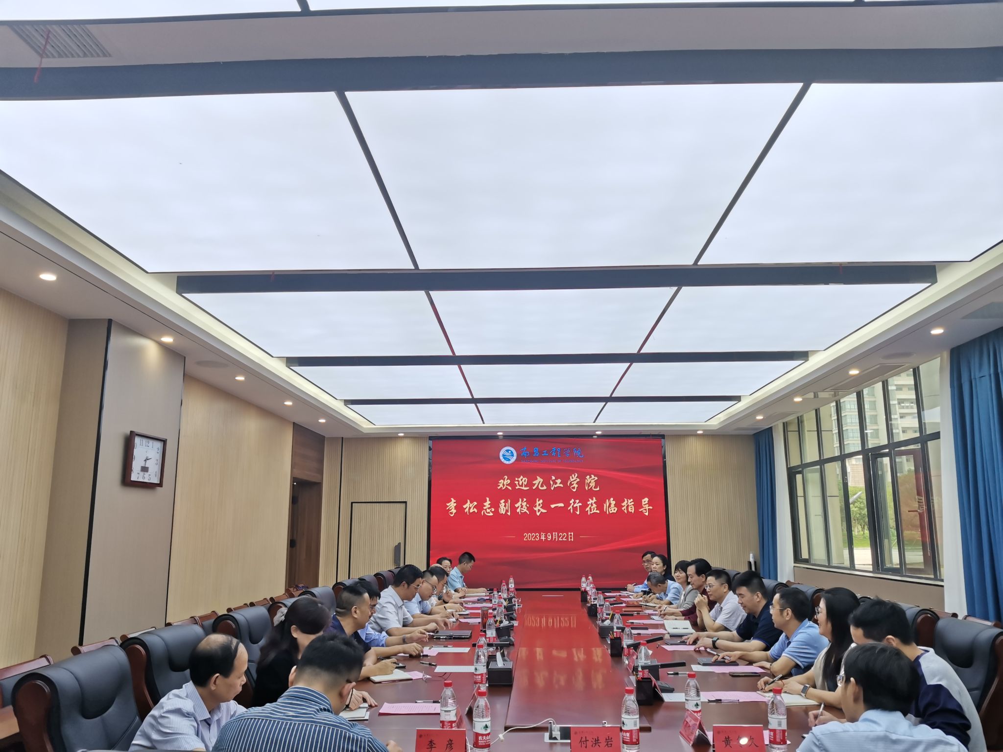 陆伟锋对李松志一行表示欢迎,介绍了学校新一轮本科教育教学审核评估的总体情况。李松志介绍了九江学院此次来校调研目的。