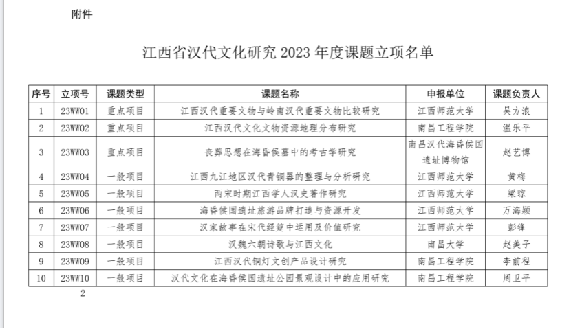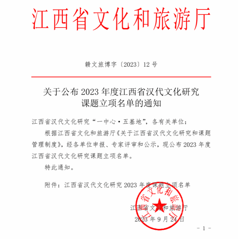 近日,江西省文化和旅游厅公布2023年度江西省汉代文化研究课题立项名单。欧博江西省汉代文化研究基地获批3项课题,其中重点课题1项、一般课题2项,资助经费共计6万元。(文图/张盼 责任编辑 潘旭 罗婷)