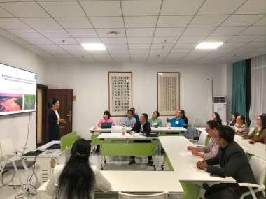 水利与生态工程学院杨茜雅博士作题为“A brief discussion on the impact of irrigation on the land surface water and energy balances of the Poyang Lake Basin”的分享汇报。活动还设置了“Group work”“Coffee break”“Free talk”等环节,老师们在轻松、愉悦的环境中练习了英语、增长了知识、增进了友谊。