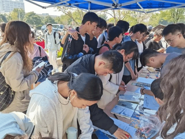 周敏丹在现场与同学们交流读书心得,和同学们共享爱读书、读好书、善读书的理念,勉励大家在阅读中坚定理想信念,涵养道德情操,树立文化自信,让阅读成为大学生的一种生活方式,以阅读助力南工学子立德、增智、养慧,更好地为谱写中国式现代化江西篇章贡献南工力量。活动现场吸引众多学生驻足观看,榫卯辅导员工作室与同学们签订2024年全民阅读承诺书并向他们赠送经典名著。