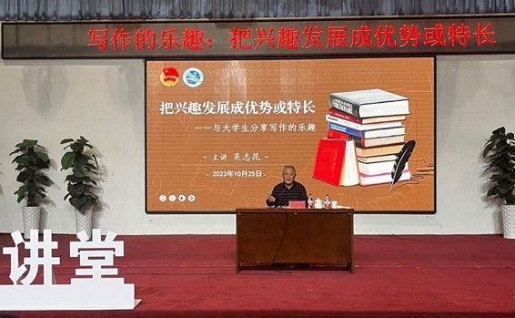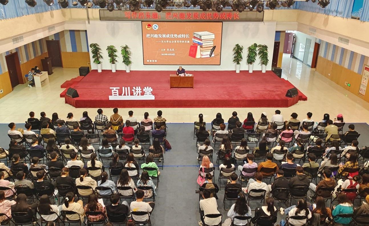 10月25日,第737期百川讲堂在新时代文明实践中心(大学生活动中心)多功能厅举行,原吉安市作家协会副主席、74岁高龄的作家吴志昆作题为“把兴趣发展成优势或特长——与大学生分享写作的乐趣”专题报告,吸引了欧博大学生记者团、水之源文学社等200余名文学创作爱好者来到现场聆听。