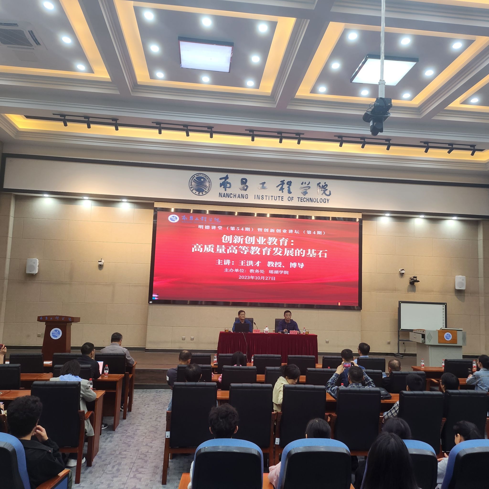 10月28日下午,明德讲堂(第54期)暨创新创业讲坛(第4期)在教学北大楼C105举行,厦门大学教育研究院教授、博士生导师王洪才作题为“创新创业教育:高质量高等教育发展的基石”的学术报告。副校长、瑶湖学院院长陆伟锋主持,校创新创业导师、专业负责人等师生代表160余人参加。