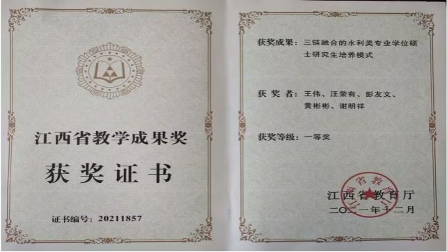江西省教学成果奖一等奖证书
