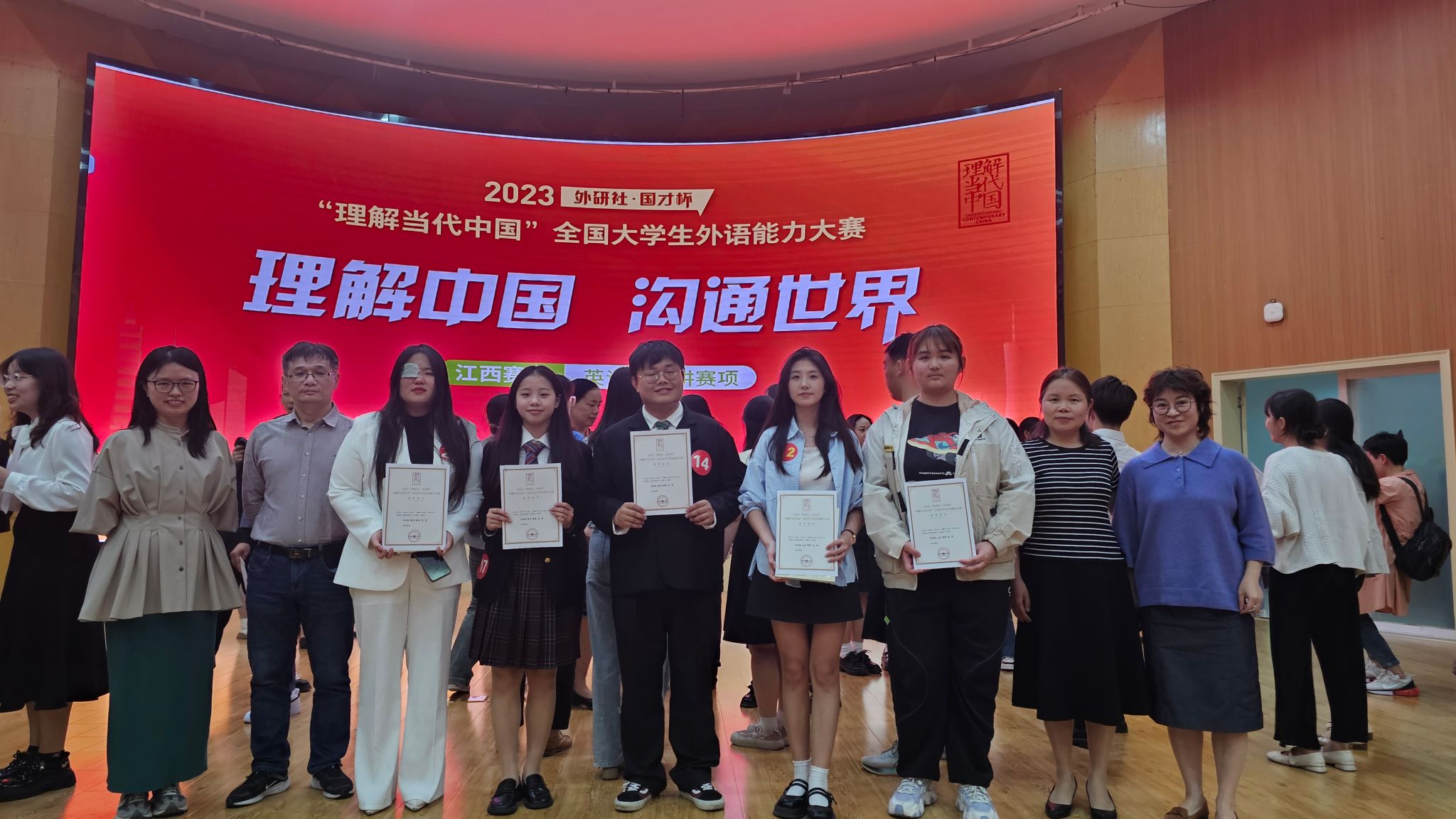 新闻背景:外研社·国才杯“理解当代中国”全国大学生外语能力大赛是纳入“全国普通高校大学生竞赛项目目录”的84项重要赛事之一。该大赛2023年赛题以“理解中国 沟通世界”为主题,引导选手深入领会习近平新时代中国特色社会主义思想的核心要义,理解中国之路、中国之治、中国之理,涵养家国情怀、全球视野,拓展知识广度、思想深度,展现外语能力、跨文化能力、思辨能力、创新能力等综合素养。本次大赛由外语教学与研究出版社、教育部高等学校大学外语教学指导委员会、教育部高等学校英语专业教学指导分委员会和中国外语与教育研究中心联合主办,来自全省48所高校的500多名选手参加了本科组的竞赛。