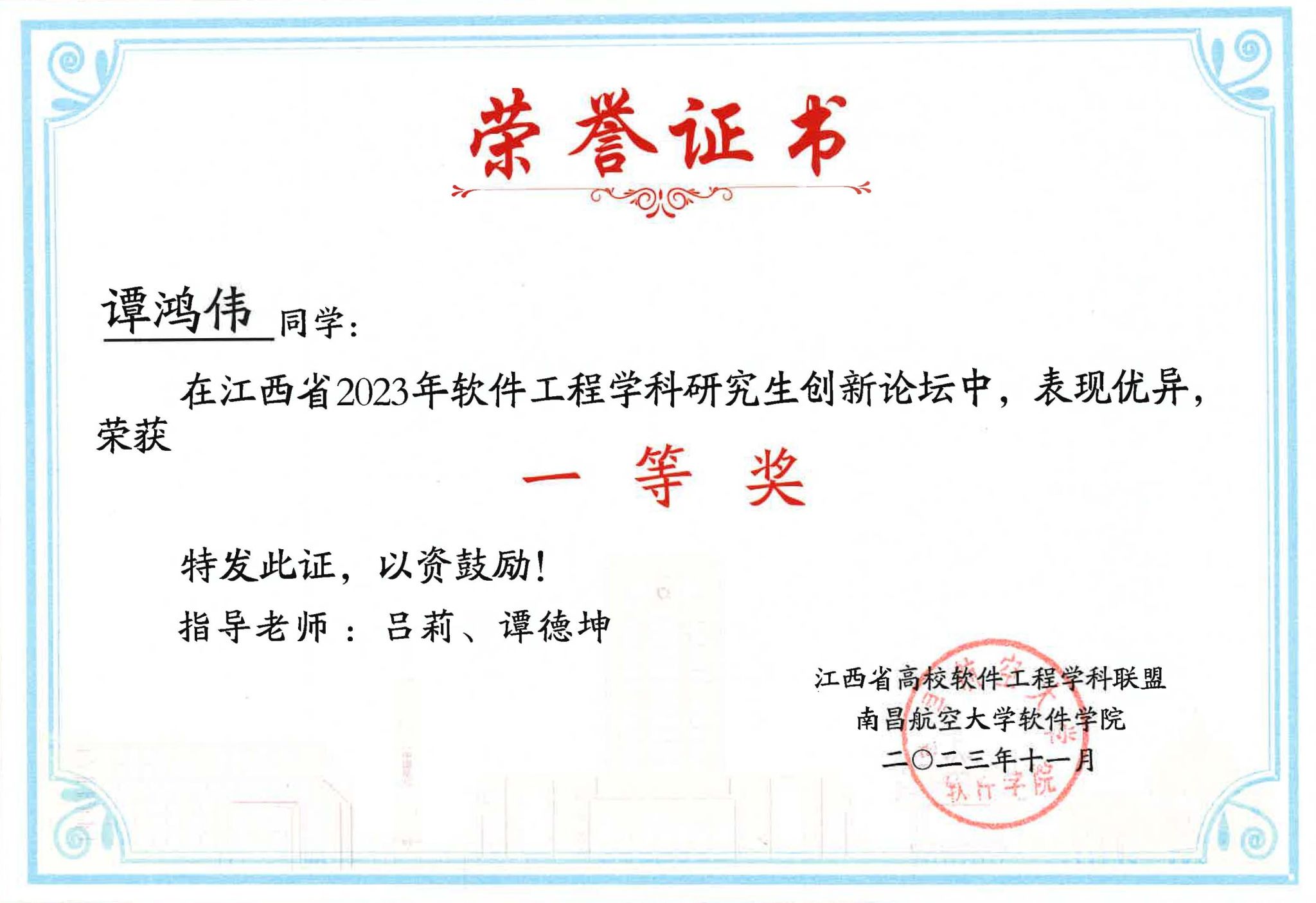 本次论坛由江西省学位与研究生教育学会、江西省教育厅主办,江西省高校软件工程学科联盟(南昌航空大学)承办,吸引了来自南昌大学、江西师范大学等高校硕士研究生参与,共评选出一等奖3名,二等奖6名,三等奖7名,优秀奖若干。活动旨在激发研究生创新意识,提高研究生创新能力,为国家培养和发掘创新型人才。(文/图 阮晶晶 谭鸿伟 责任编辑 潘旭 罗婷)