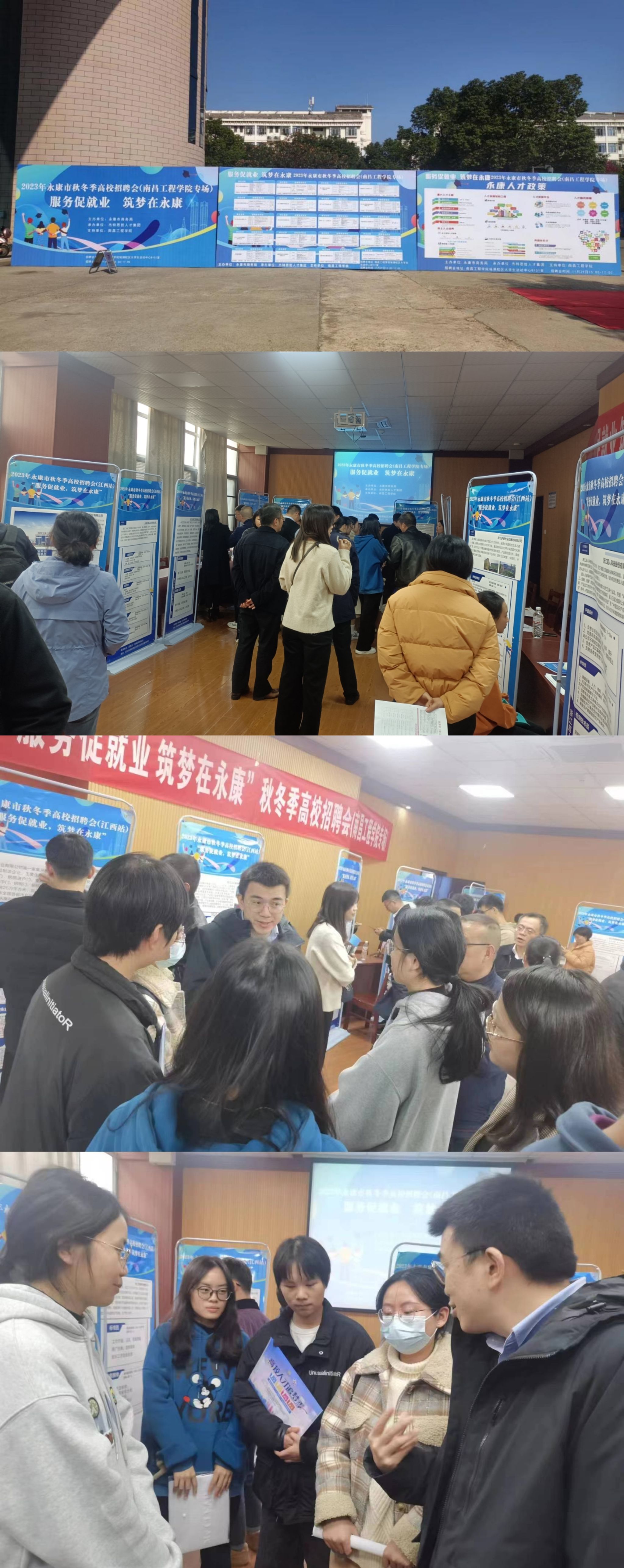 在永康市政校企座谈会上,招生就业处负责人介绍了学校校情校史、人才培养等方面情况。三方就人才招聘、实习就业等方面进行了深入交流,对实现资源共享、优势互补,地方选才用才,促进欧博毕业生高质量就业达成共识。“服务促就业,筑梦在永康”南昌工程学院专场招聘会随后在大学生活动中心B100开展,来自永康市飞神车业、王力安防、哈尔斯、飞剑工贸、星莱合、立久佳、超人科技等20家浙江省专精特新企业、浙江省规上企业、上市公司、龙头企业提供了涵盖理、工、经、管、文等学科门类工作岗位70余个,计划招聘人数400余人。毕业生热情高涨,积极投递个人简历,与企业深入交流,了解企业发展前景、岗位需求以及薪酬福利等相关信息。现场百余名学生参加此次专场招聘活动,企业收取简历100余份,达成初步就业意向40余人。