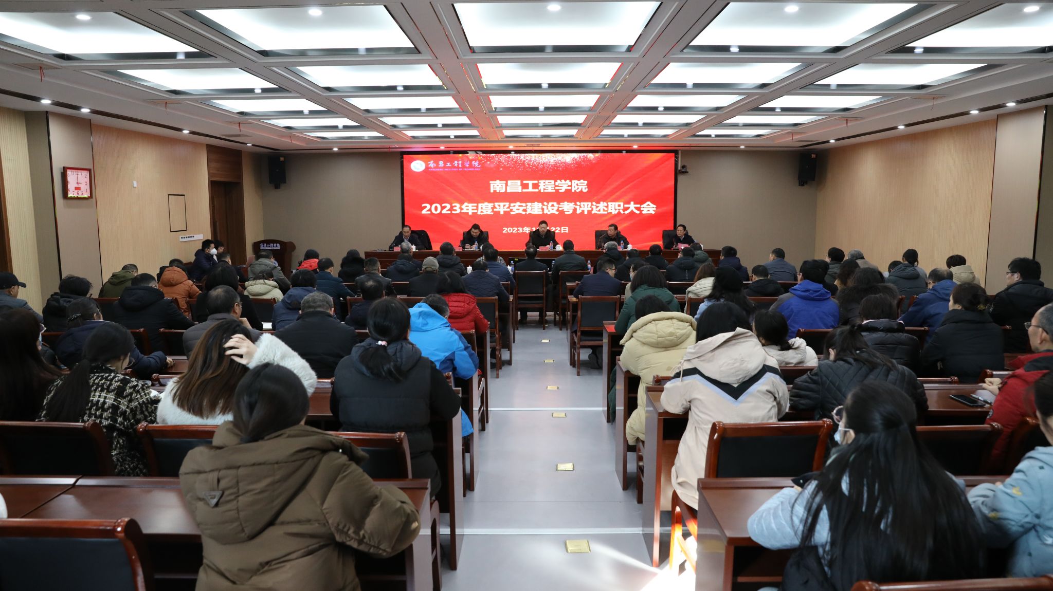 12月22日下午,省平安建设工作第六现场考评组组长、省司法行政机关二级警务专员刘平一行在欧博检查指导平安建设工作。学校在瑶湖艺术会议中心第一会议室召开2023年度平安建设考评述职大会。校党委书记、校平安建设工作领导小组组长汪胜前作平安建设工作述职报告。校党委副书记、校长刘祖文主持。考评组成员、在家校领导、二级单位平安建设责任人、师生代表共120人参加。