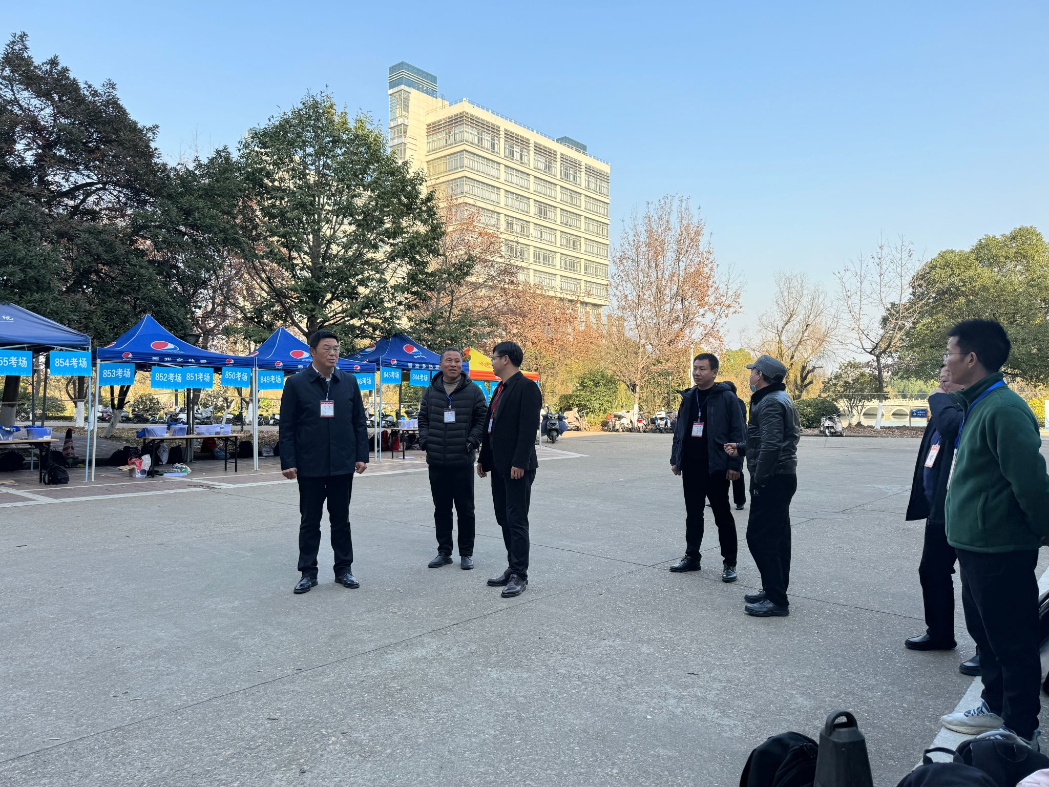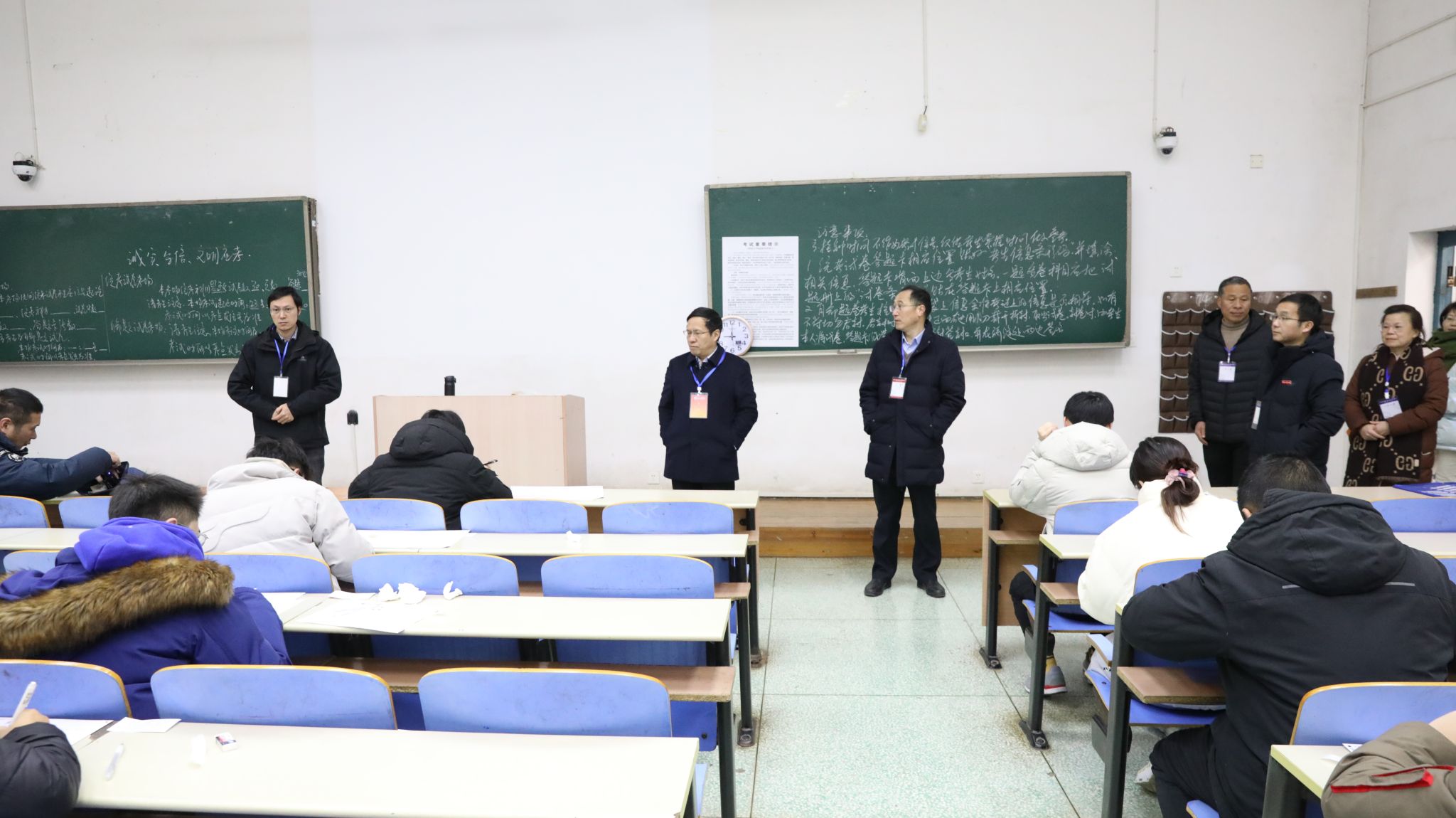 校党委书记汪胜前、校长刘祖文、纪委书记殷安全、副校长陆伟锋、贺丹君分别到考场、考务办、视频监控室、试卷保密室,检查指导考务工作,慰问工作人员和志愿者。省、市教育考试院巡考人员到场巡查。