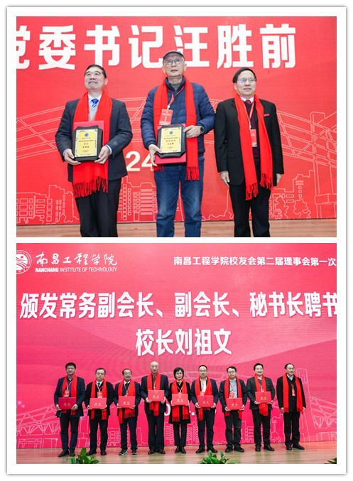 校友服务中心负责人对大会筹备情况及校友会章程修订情况进行说明。计划财务处相关负责人、校友会财务主管作第一届理事会财务工作报告。大会审议通过校友会第一届理事会工作报告、财务报告,表决通过《南昌工程学院校友会章程(2023修订稿)》,选举产生校友会新一届理事会,于镇静等100名校友当选为校友会第二届理事会理事。理事会二届一次会议上,与会理事选举产生校友会第二届理事会常务理事及组织机构负责人,吴泽俊当选第二届理事会会长。汪胜前为名誉会长王志锋、新任会长吴泽俊颁发聘书。刘祖文为常务副会长、副会长、秘书长颁发聘书。
