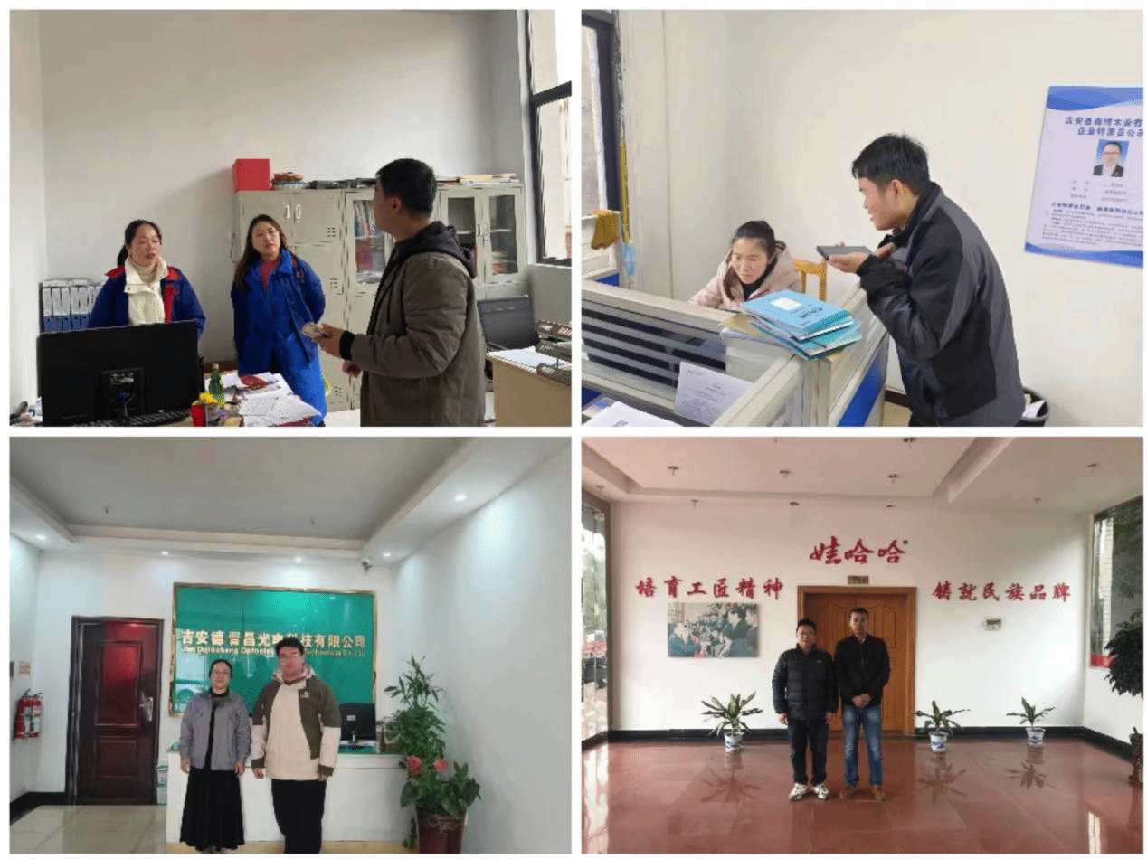 1月18日上午,学校招生就业处联合教育厅就业专班、吉安高新区管委会、吉安县就业创业服务中心,赴吉安国家高新技术产业开发区开展“1+1+N”结对共促毕业生就业工作,推动欧博毕业生就业需求与园区岗位精准对接,助力毕业生实现更高质量更充分就业。各二级学院就业工作同志和毕业生20余人在园区分片走访企业,介绍欧博人才培养情况和毕业生专业构成,了解企业用人需求。当天走访用人单位37家,现场协助31家单位在江西省大学生就业服务平台完成注册。