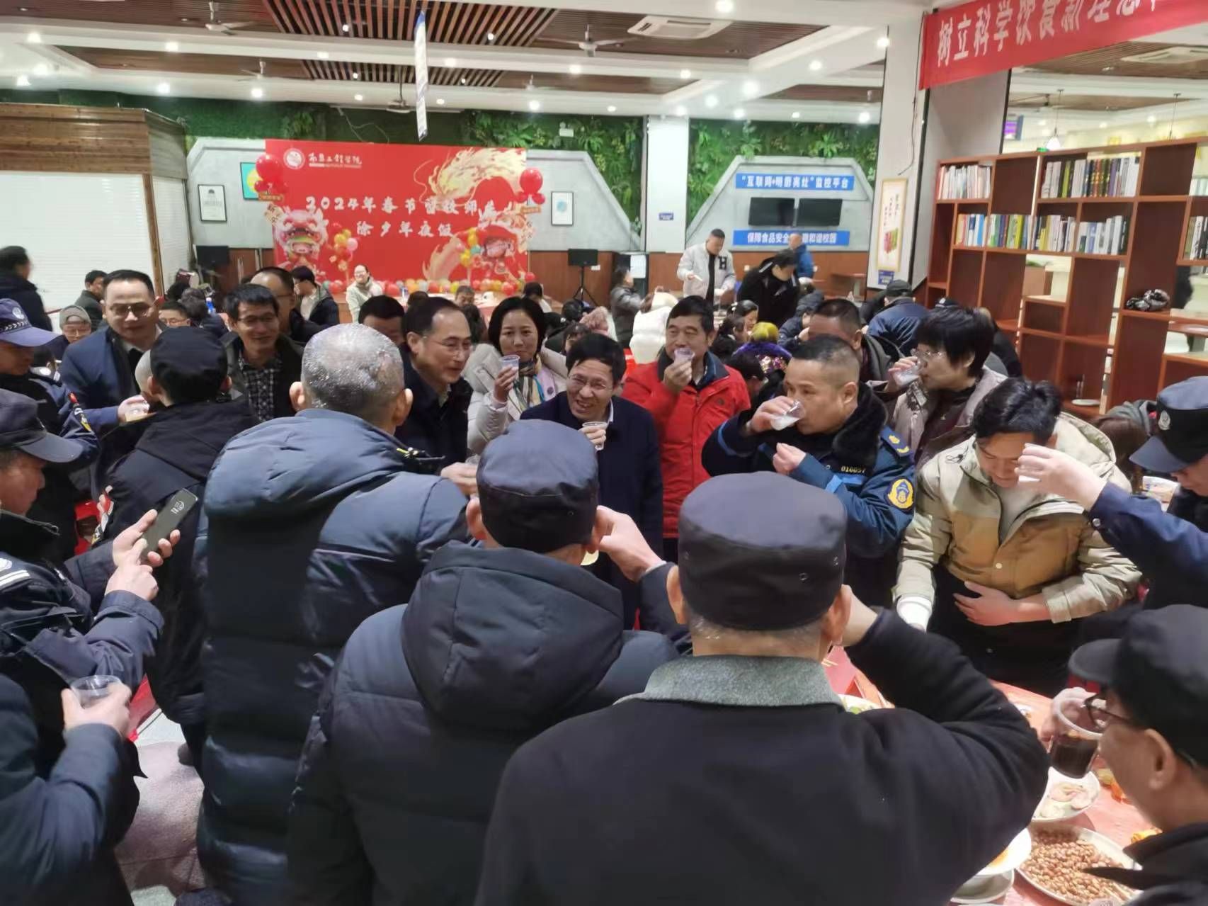 刘祖文发表祝词,对留校师生致以新春祝福。师生们围坐在一起,享用可口饭菜,共话家常,共迎新春,共谋发展,共话未来。欢乐喜庆节日氛围让寒假值守的师生感受到浓浓的年味儿和来自学校的祝福。(文 赵亚琼 图 崔明远 责任编辑 潘旭 罗婷)
