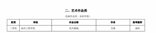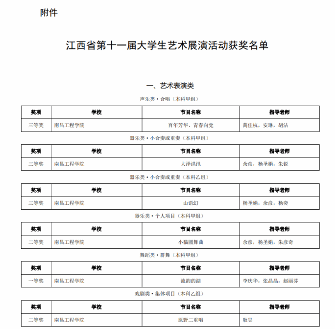 近日,江西省教育厅公布了第十一届大学生艺术展演活动评选结果,欧博喜获多项荣誉表彰。在艺术表演类别中,《流韵的湖》荣获一等奖及舞蹈类甲组“优秀创作奖”;《小猫圆舞曲》等2个节目荣获二等奖;《百年芳华、青春向党》等3个节目荣获三等奖;在艺术作品类别中,绘画作品《花卉静瓶》荣获三等奖。(文/图 朱彦奇 魏靖丹 责任编辑 潘旭 罗婷)