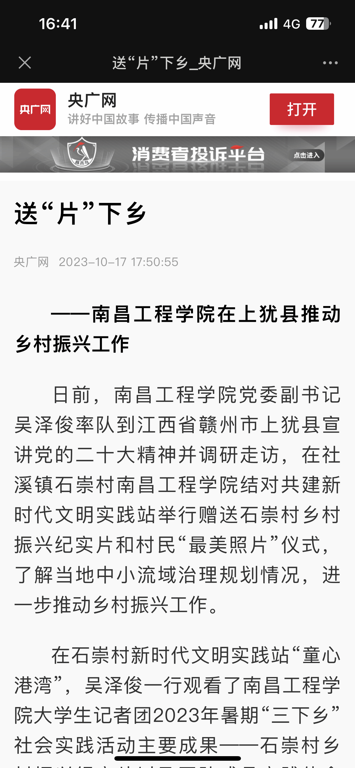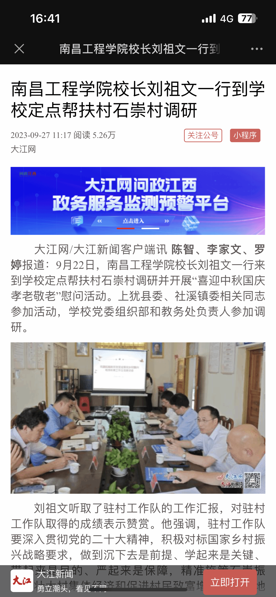 推进科研成果转化落地,打造美丽乡村新风貌。立足石崇村自身特点,因地制宜,围绕巩固拓展脱贫攻坚成果同乡村振兴有效衔接,充分发挥学校水利专业优势,结合石崇村实际,科学编制石崇村生态清洁小流域综合治理,让乡村更加美丽。
