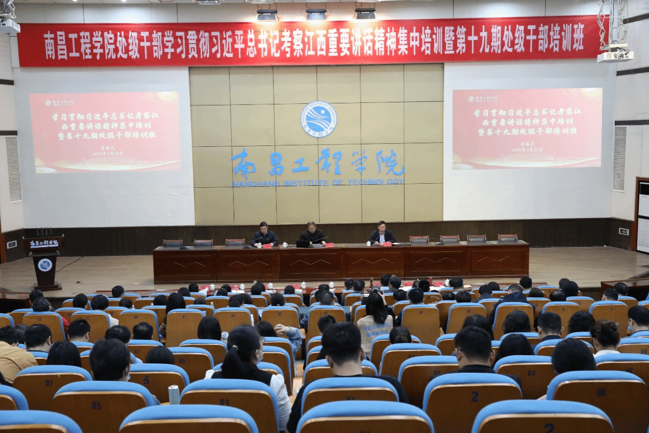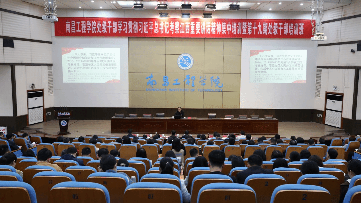 3月25日,学校学习贯彻习近平总书记考察江西重要讲话精神专题培训班在大禹学术报告厅开班。校党委书记汪胜前作动员讲话,校党委副书记吴泽俊主持,校党委班子成员、副处级以上干部、全校党支部书记及专兼职党务工作者等200余人参加培训。