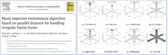魏子宸在《SwarmandEvolutionaryComputation》上发表的题为“Many-objective evolutionary algorithm based on parallel distance for handling irregular Pareto fronts”的学术论文,针对不规则Pareto前沿面的高维多目标优化问题的求解,提出了一种基于平行距离的高维多目标进化算法。基于平行距离,设计了多样性度量和综合度量指标。第一个度量指标能有效地处理具有不同形状的Pareto前沿面,第二个度量指标综合考虑了收敛性和多样性。基于这两个度量指标,提出了一种匹配选择方法和一种环境选择策略。在匹配选择中,选择具有良好收敛性或多样性的解以提高后代种群的质量。在环境选择中,通过这两个度量指标增强种群的选择压力。仿真实验测试了45个基准问题,与其它6种知名的算法相比,团队提出的方法在处理具有不规则Pareto前沿面的高维多目标优化问题时具有较强的竞争力。(文/图 阮晶晶 责任编辑 潘旭 罗婷)