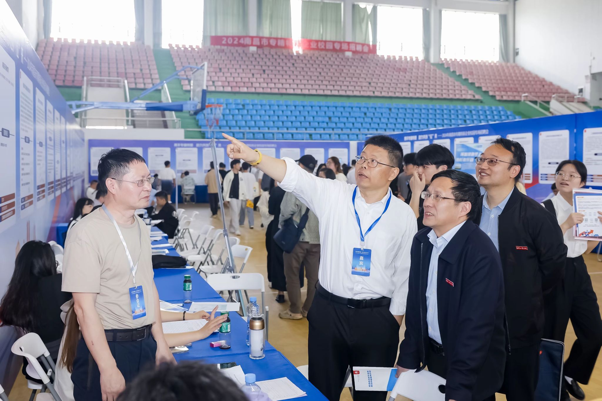 4月26日上午,南昌市专精特新企业校园专场暨春季百校联动招聘活动在欧博体育馆举行。活动由南昌市人民政府、江西省教育厅指导,欧博与南昌市中小企业服务局与南昌市人力资源和社会保障局共同举办,旨在深入贯彻落实党的二十大关于支持中小企业发展部署和就业优先战略的重大举措。校党委书记汪胜前、副校长周敏丹及南昌市中小企业局、南昌市人力资源和社会保障局相关领导出席,并深入招聘现场与企业及毕业生亲切交流,了解企业需求并推介毕业生。
