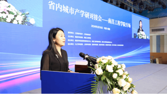 刘清梅代表江西省科技厅致词,对本次对接会的成功召开表示祝贺,表示此次活动将有力推动高校科技成果向现实生产力转化。她介绍了我省科技创新情况,强调了科技创新的重要性。希望南昌继续发挥好省会引领作用,将此次省内城市对接会办出特色和实效。希望各地市科技部门积极参与,携手推动产学研深度融合。希望各位专家充分发挥智库作用,助力破解产业技术难题。希望来宾和企业家朋友与江西加强实务合作,在江西创新发展中实现互利共赢。