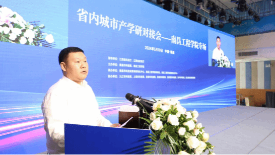 凌敏杰代表南昌市科技局致词,介绍南昌市科技创新情况,阐述南昌构建“科学发现、技术发明、产业发展、人才支撑、生态优化”科技创新链条。他指出,省内城市产学研对接会旨在建立以企业为主体、市场为导向、产学研深度融合的技术创新体系,促进省内高校院所创新性成果与优质企业精准对接,实现一批高质量科技成果在省内落地转化,以科技创新驱动省内城市经济高质量发展,未来还将联系多所高校和新型研发机构举办多场此类对接活动。
