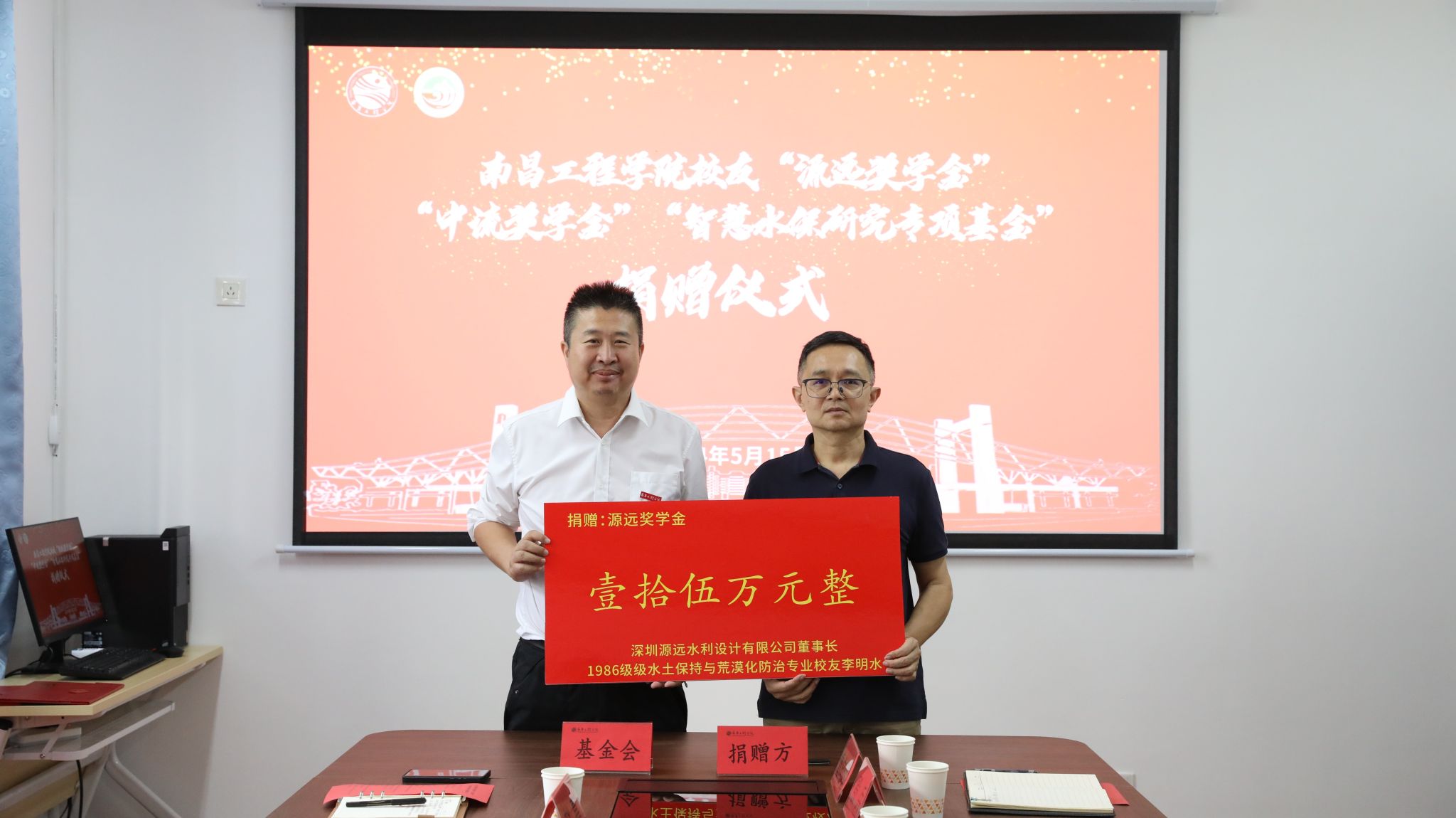 5月15日上午,“源远奖学金”“中流奖学金”“智慧水保研究专项基金”捐赠仪式在水土保持学院举行。校长刘祖文,校党委副书记吴泽俊,捐赠校友李明水、钟莉煌出席捐赠仪式,校友服务中心、水土保持学院、信息工程学院的负责同志和师生代表参加。