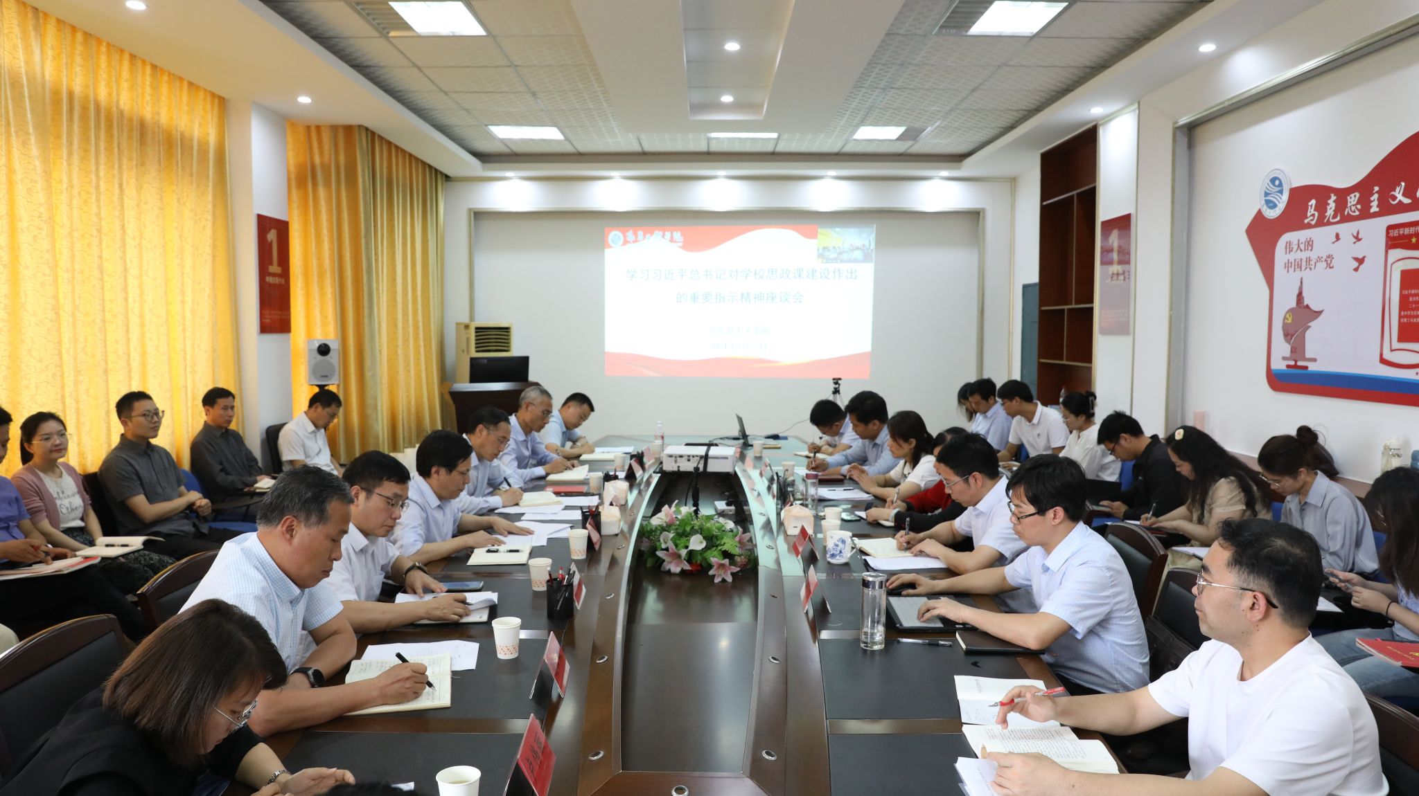 座谈会后,校领导在马克思主义学院开展调研并召开现场办公会,听取工作汇报,肯定学院的工作成效,并就进一步推进思政课建设提出建议和要求。(文/钟荣 图/潘旭 责任编辑 潘旭 罗婷)