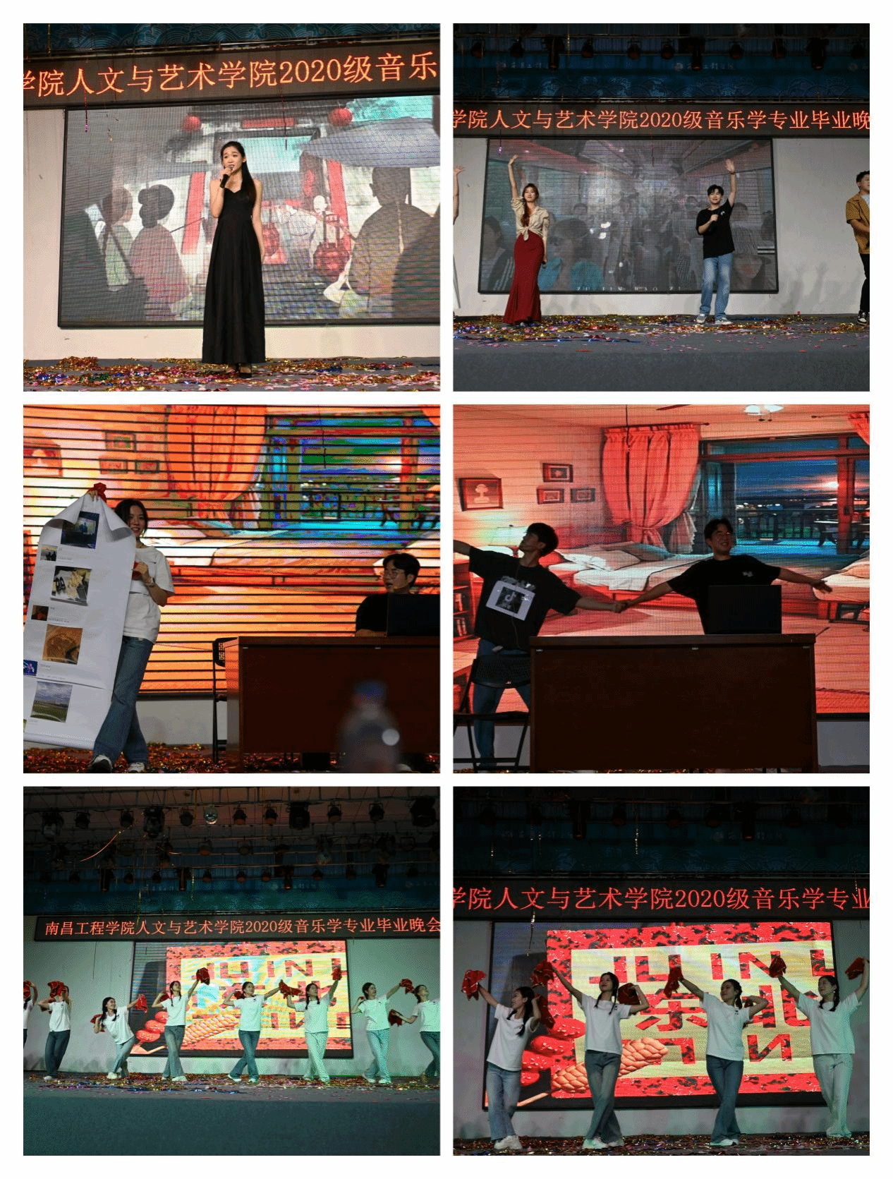 本次毕业晚会包含17个节目,演绎形式多样。《阳光男孩阳光女孩》舞蹈作为开场表演,展现了毕业生们激情四溢的青春活力。《齐天大圣》《最美的太阳》《冬天里的一把火》等歌曲表达了毕业生们对校园生活的美好回忆、对未来人生道路的热烈期待;情景剧《时间都去哪儿了》揭示了大学生应该怎样进行时间管理,规划好自己的大学生活;器乐合奏《上春山》展现了大学生们对中华优秀传统文化的传承和弘扬;原创歌曲《青春向党》是在校团委的指导下,2020级音乐学班主任蒿佳杭和郭腾、杨宗霖、费叶琳、徐思琦等同学一起创作并演唱的建团百年歌曲,该作品曾在“学习强国”学习平台上发表,激励当代大学生努力在青春赛道上跑出最好成绩;乐队表演《你要跳舞吗》《海阔天空》将晚会推向高潮,彰显了音乐学子们扎实的专业功底和独特的艺术魅力。晚会在《离别诗》朗诵节目后落下帷幕,观众们纷纷起立,为毕业生们送上热烈的掌声和深情的祝福。