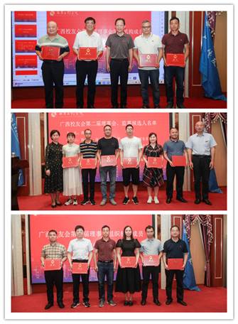 学校校友服务中心负责人宣读《关于同意广西校友会筹备换届选举工作的批复》。广西校友会第一届理事会会长潘世阳(1993级财务与会计专业)作第一届理事会工作报告,陈金根(2024级水土保持专业)作筹备工作报告。大会表决通过《南昌工程学院广西校友会章程(2024修订稿)》,选举产生广西校友会第二届理事会。蒋昌福(1992级水电站动力设备专业)当选为第二届会长。与会嘉宾分别为第二届理事会名誉会长、会长、副会长、秘书长、顾问、理事颁发聘书。