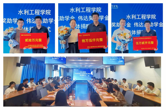 6月27日下午,正宏奖助学金、伟达奖助学金、水利工程学院院名石集体捐赠仪式举行。校长刘祖文,校党委副书记吴泽俊,正宏奖助学金捐赠代表郑克红,院名石捐赠代表田晔、李兵、王磊、吴邦彬出席活动,校教育发展基金会、水利工程学院、学生工作处学生资助管理中心的负责同志和师生代表参加活动。