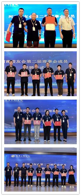 学校校友服务中心负责人宣读《关于同意河南校友会筹备换届选举工作的批复》。河南校友会第一届理事会会长杨水龙(1993级水利水电工程施工专业)作第一届理事会工作报告,毛富波(2002级道路工程专业)作筹备工作报告。大会表决通过《南昌工程学院河南校友会章程(2024年修订稿)》,选举产生河南校友会第二届理事会。余学平(1994级应用电子技术专业)当选为第二届会长。与会嘉宾分别为第二届理事会名誉会长、会长、副会长、秘书长、副秘书长、理事、监事颁发聘书。