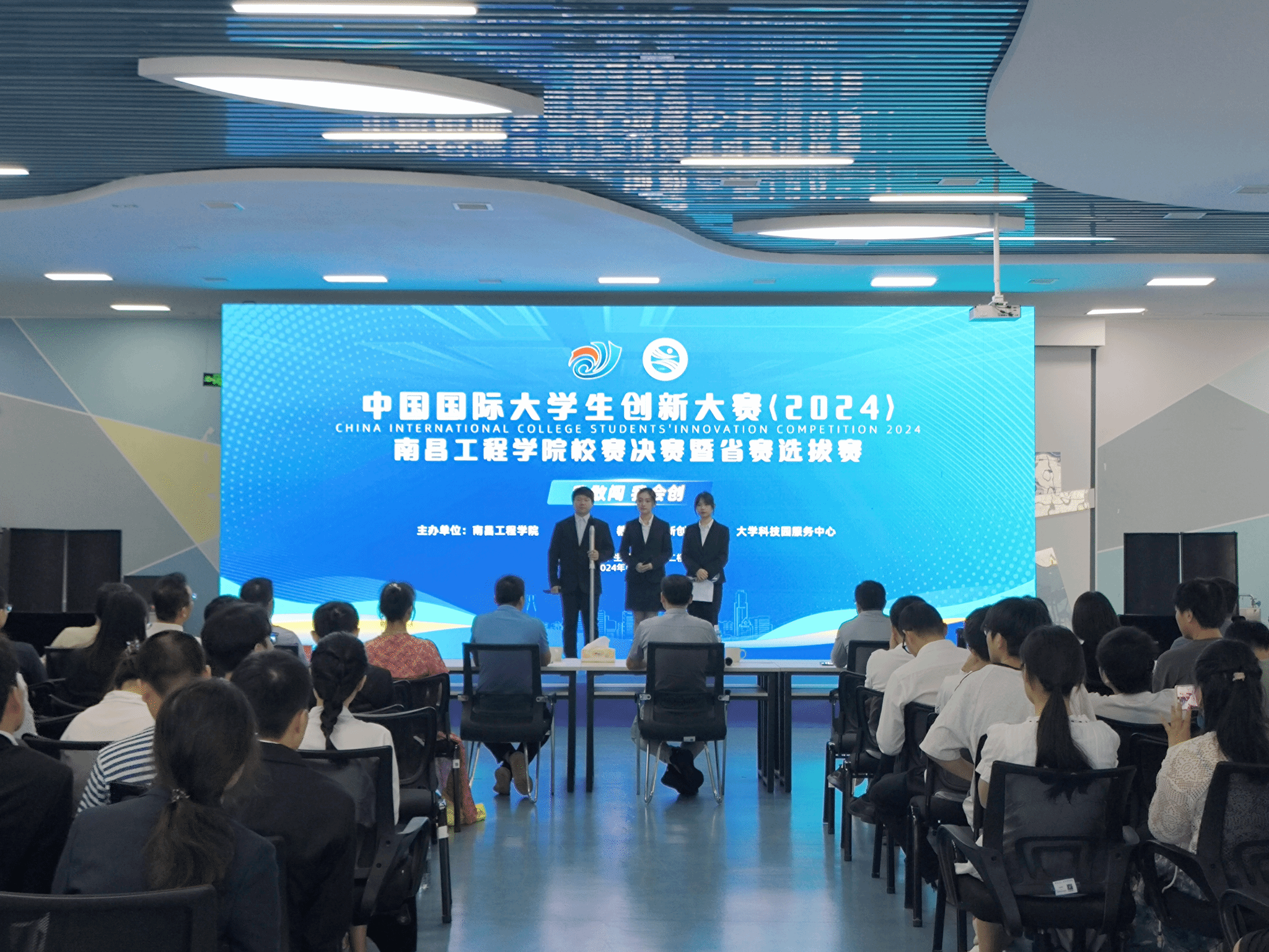 6月28日,中国国际大学生创新大赛(2024)校赛决赛暨省赛选拔赛在大学生创新创业园举行。副校长陆伟锋、教务处(创新创业学院)负责同志、各教学单位的有关负责同志及师生代表参加。