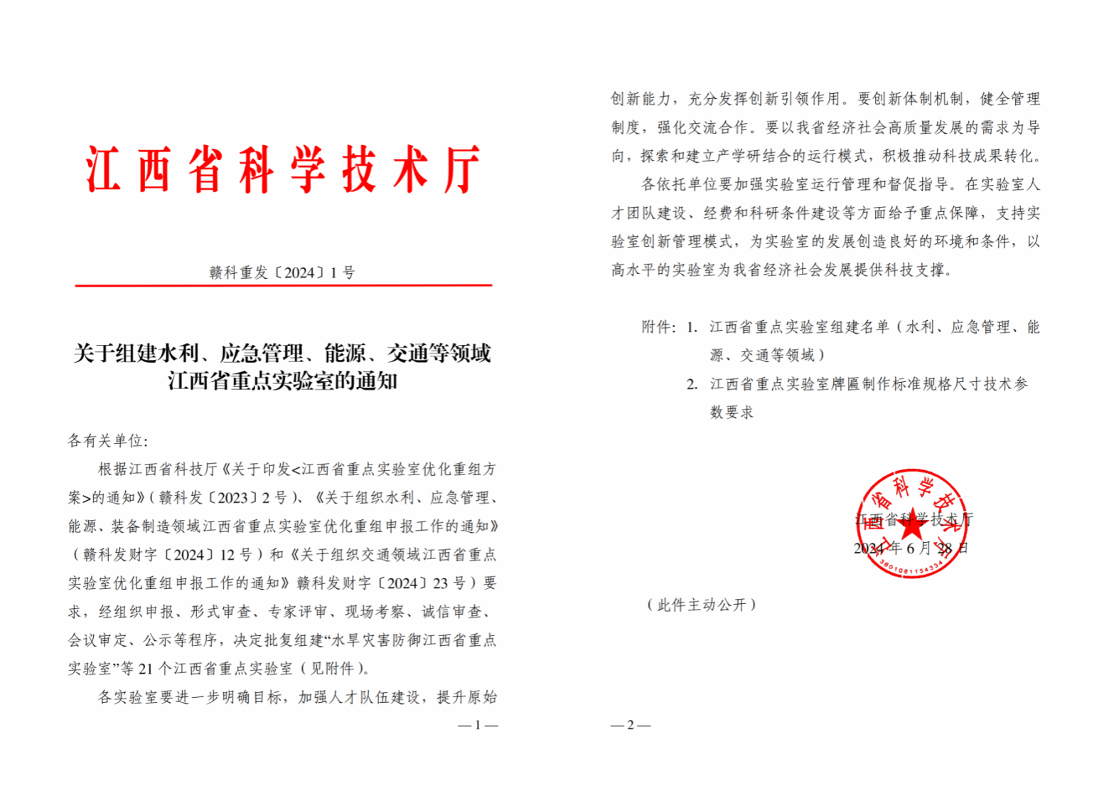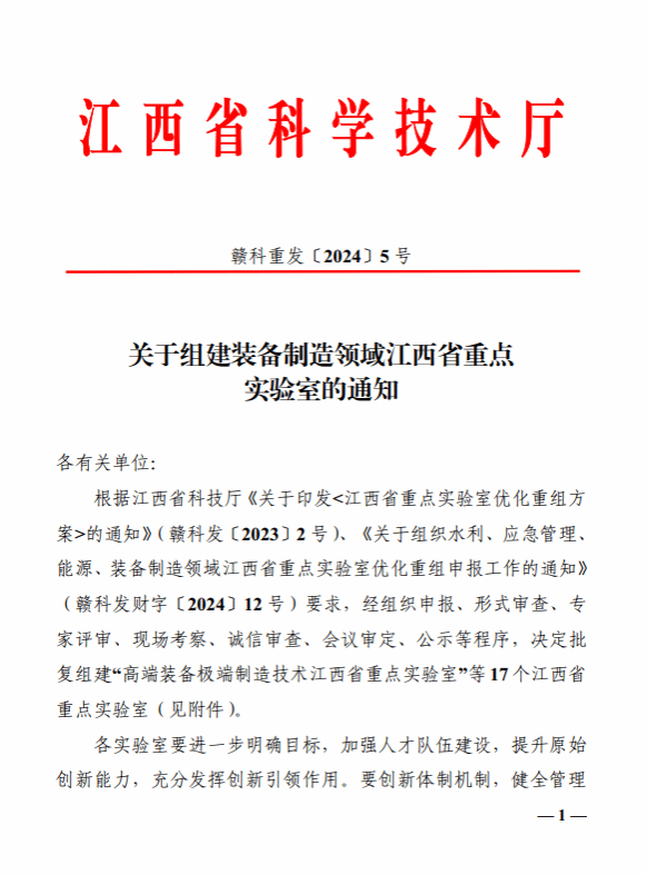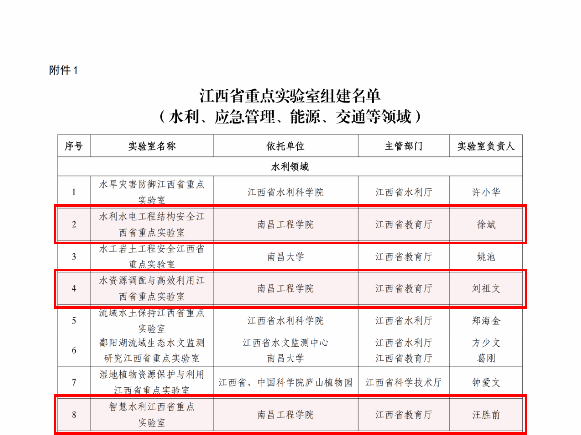 近日,江西省科学技术厅印发《关于组建水利、应急管理、能源、交通等领域江西省重点实验室的通知》和《关于组建装备制造领域江西省重点实验室的通知》,欧博申报的“水利水电工程结构安全江西省重点实验室”“水资源调配与高效利用江西省重点实验室”“智慧水利江西省重点实验室”和“精密驱动与装备江西省重点实验室”获批立项。截至目前,欧博原有的5个省级重点实验室全部完成优化重组工作。