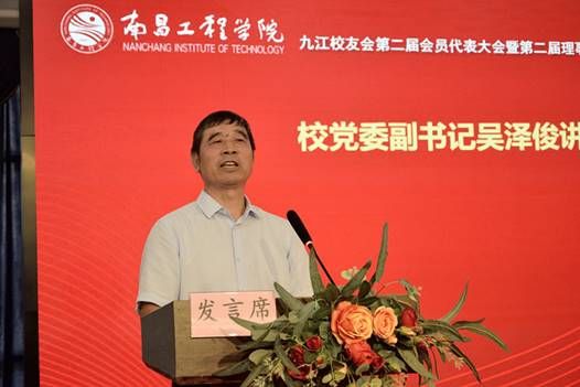 伴随着南昌工程学院校歌《上善之道》催人奋进的旋律,大会正式开幕。吴泽俊代表全校师生及广大校友对九江校友会顺利换届表示祝贺,介绍了母校近年来在人才培养、学科建设等方面取得的显著成绩。他指出,九江校友会自成立以来,紧跟母校发展步伐,开展了一系列细致而又卓有成效的工作,为母校在人才培养、科学研究、校地合作、就业促进等方面提供了诸多帮助。他希望九江校友会不断加强自身建设,广泛联络与凝聚校友;充分发挥平台作用,持续推进合作共赢;始终心系母校发展,不断贡献校友力量。