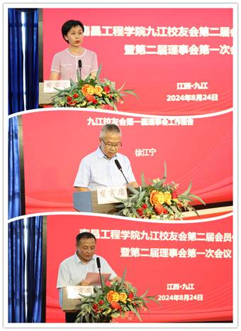 学校校友会负责人宣读《关于同意九江校友会筹备换届选举工作的批复》。九江校友会第一届理事会秘书长徐江宁(1986级水土保持专业)作第一届理事会工作报告,副会长邓小德(1982级水利水电建筑工程专业)作筹备工作报告。大会表决通过《南昌工程学院九江校友会章程(2024修订稿)》,选举产生九江校友会第二届理事会。郭冬生(1981级水电站动力设备专业)当选为第二届会长。与会嘉宾分别为第二届理事会会长、执行副会长、副会长、秘书长、理事颁发聘书。