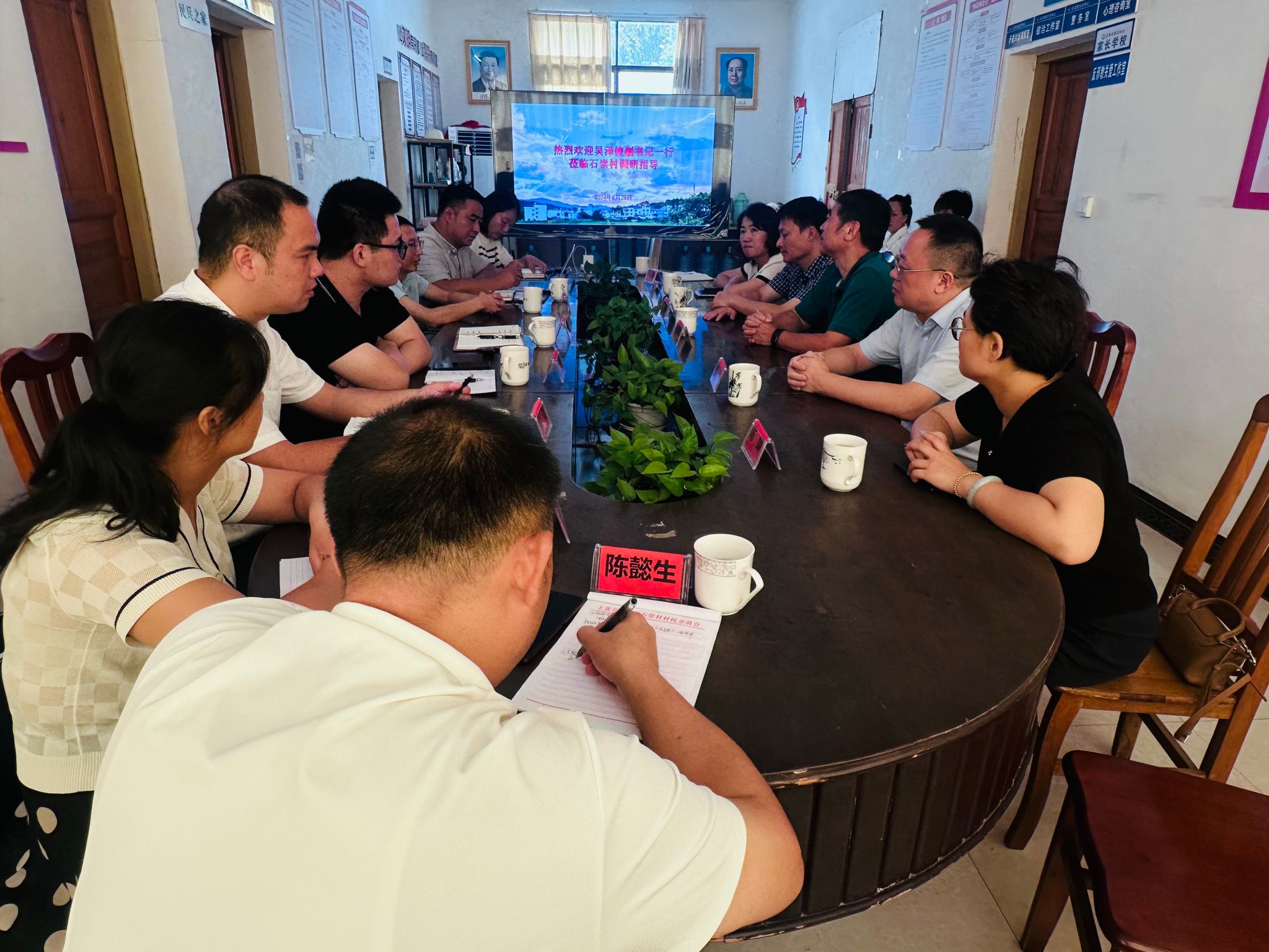 调研组一行查看了石崇村新时代文明实践站阵地建设情况,听取了学校驻村工作队关于帮扶民族融合、阵地建设、资源整合、活动开展等工作情况汇报。社溪镇负责人就石崇村新时代文明实践工作开展情况、文明实践结对共建、民族团结工作等情况进行了汇报。吴泽俊对社溪镇石崇村新时代文明实践站阵地建设、民族团结工作开展情况给予肯定,要求工作队认真贯彻落实党的二十届三中全会精神,抓好党建促乡村振兴,加强党建引领基层治理,做好做优打造示范站,推动铸牢中华民族共同体意识,将学校的专业优势和资源聚焦到乡村振兴上来,用可视化力量推进校村融合,促进新时代文明实践站建设。