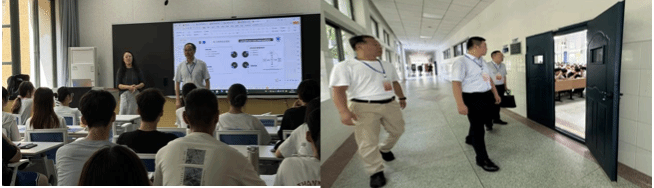 检查过程中,校领导深入课堂了解教师授课、学生出勤和课堂纪律情况,仔细查看教学设施设备运行情况,对开学师生饱满的精神状态、良好的教学秩序、各项教学条件保障到位表示肯定。在教学运行监控中心,汪胜前、陆伟锋认真察看了各教室内实时课堂情况,学生到课率和学习状态等,听取了教务处关于新教务系统使用、智慧教学环境建设等相关情况汇报;在《马克思主义基本原理》《电子商务支付与安全》课堂,刘祖文与师生交流,勉励学生主动学习、锻炼身体,做堪当民族复兴重任的时代新人。