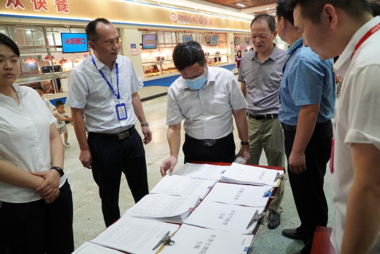 检查组一行深入食堂就餐大厅、后厨加工间,实地察看了食堂文化提升改造、“互联网+明厨亮灶”平台管理、环境卫生、菜品菜价、仓储物资管理、日常管理台账等;重点检查了物资采购、食材加工、食品留样、餐具厨具清洗消毒、虫鼠害防控、消防设施配备等关键环节;详细了解了食品安全日常监督管理落实的常态化举措。