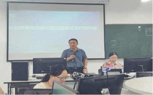 9月9日下午,计划财务处在济民楼B312开展投递式网上报账培训,相关单位主要负责人及报账员等90余人参加培训并上机操作。副校长贺丹君出席培训会议并讲话。