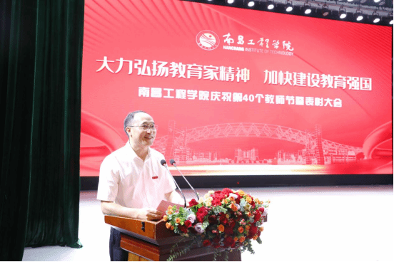 汪胜前代表学校向全校教职员工致以节日的问候!感谢全体教职员工过去一年齐心协力、积极工作,为学校发展做出的积极贡献!他指出,教师是一个神圣而伟大的职业,无怨无悔地哺育着莘莘学子;教师是一项崇高而庄严的使命,无私奉献,为党育人、为国育才;教师是一份光辉而美好的事业,推动着学生成长、社会发展和时代进步。他强调,学校党委深入学习贯彻习近平总书记关于人才工作的重要论述,大力实施“人才强校”战略,深化人才发展体制机制改革,加大高层次人才引进和培育力度,高层次人才队伍不断壮大,以高质量人才引领高质量发展取得显著成效,学校荣获2023年度省管高校综合考核第一等次(位列同类高校第二名)。他号召,全校上下、全体教职员工要坚持以习近平新时代中国特色社会主义思想为指导,深入贯彻党的二十届三中全会精神,认真落实习近平总书记考察江西重要讲话精神,加快建设高水平水利电力特色大学,努力办好人民满意高等教育,以优异的成绩向新中国成立75周年献礼!