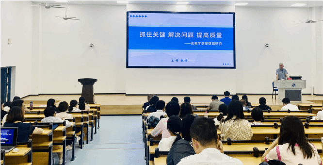 王锋教授结合自己丰富的研究经历,从什么是教学改革研究课题、如何选题、如何撰写申报书,结合案例进行了详细介绍,同与会教师深入交流。讲座主题鲜明、重点突出、内容丰富,既拓宽了教师教学改革研究的视野和思路,又增强了大家申报教育教学改革研究项目的信心,对进一步提高教师教学研究水平,促进人才培养质量提升具有指导意义。(文图/王飞 责任编辑 潘旭 罗婷)