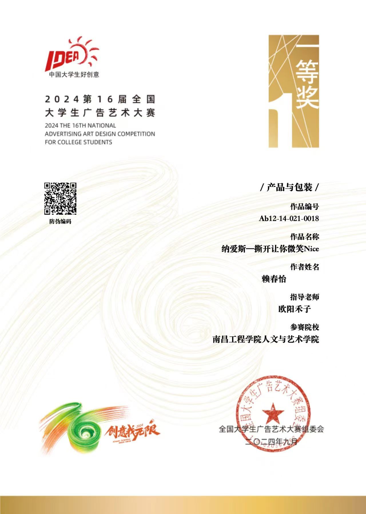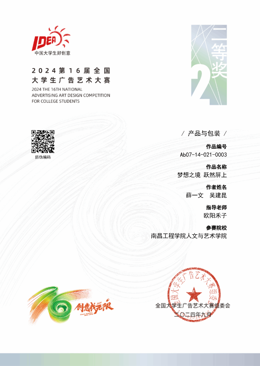 近日,全国大学生广告艺术大赛组委会正式公布第16届国赛获奖结果。欧博在本次比赛中取得优异成绩,共获得国赛一等奖1项,二等奖1项;获得33项省奖,其中一等奖3项,二等奖14项,三等奖16项,创欧博在该项比赛的历史最好成绩。