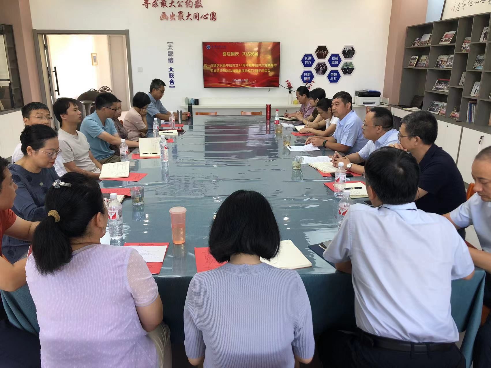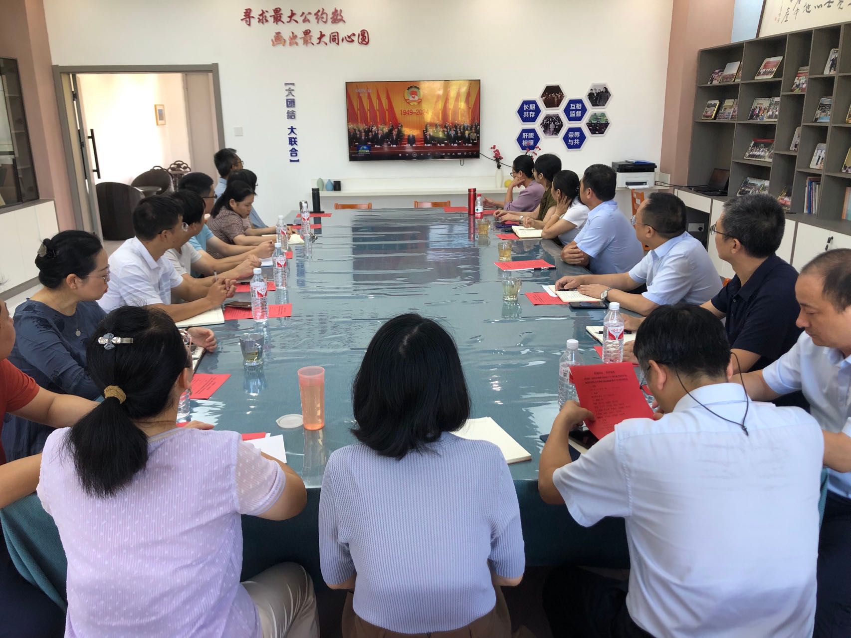 会上,大家共同学习了习近平总书记在庆祝中国人民政治协商制度会议成立75周年大会上的重要讲话精神并观看了专题片《“五一口号”从这里出发》。全国人大代表、教师发展与服务中心主任彭聪分享了在中央社会主义学院学习党的二十届三中全会精神的收获和体会。