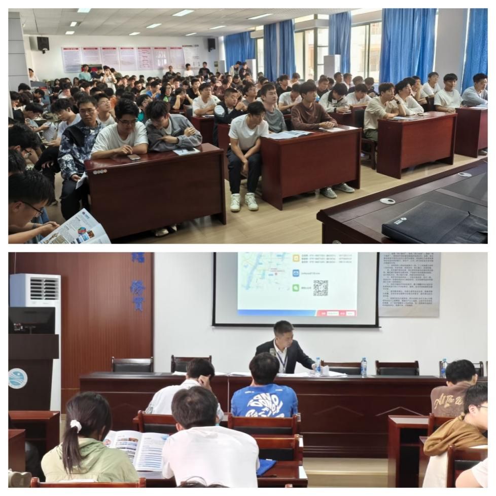 在足球友谊赛进行的同时,中国电建集团江西省水电工程局有限公司2025届毕业生招聘会也在土木与建筑工程学院火热进行。招聘现场气氛热烈,人头攒动,吸引众多学子前来应聘,面试环节有序开展。