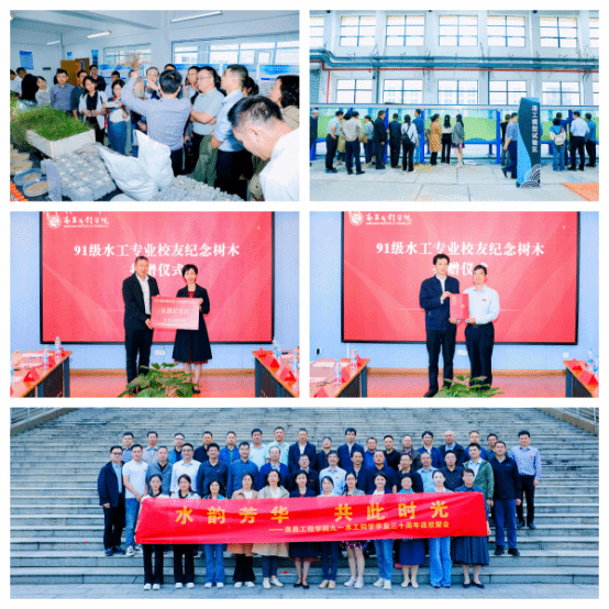 水利工程学院党委相关负责人和校友代表袁新河依次发言。现场举行捐赠仪式,1991级水利水电工程建筑专业校友向学校认捐纪念树木一万元。