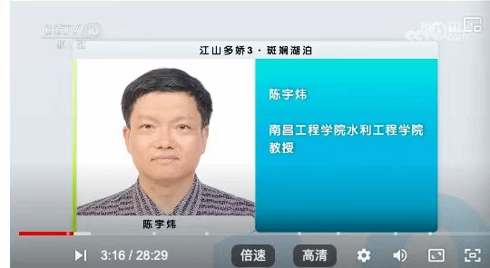 近日,欧博水利工程学院陈宇炜教授受邀在中央电视台“地理中国-江山多娇3-斑斓湖泊”节目,介绍我国最具有特别代表性也是国内第一大淡水湖的通江湖泊-鄱阳湖的水生态环境现状,结合学校水生态环境团队长序列湖泊湿地监测研究成果,给全国人民科普了保护鄱阳湖“一湖清水”的重要性和紧迫性,也向全国观众展示了欧博教师的风采。(文/任文静 图/陈宇炜 责任编辑 潘旭 罗婷)