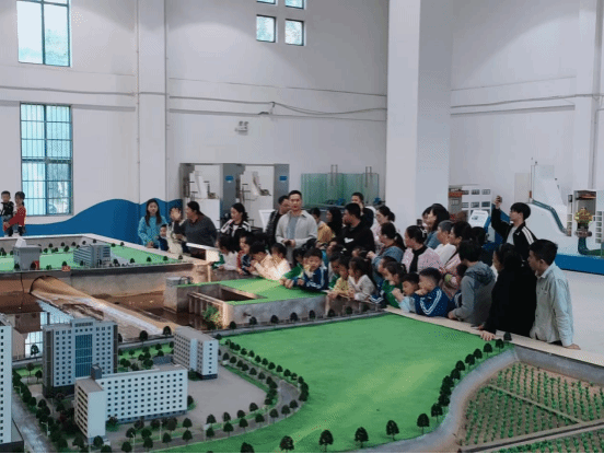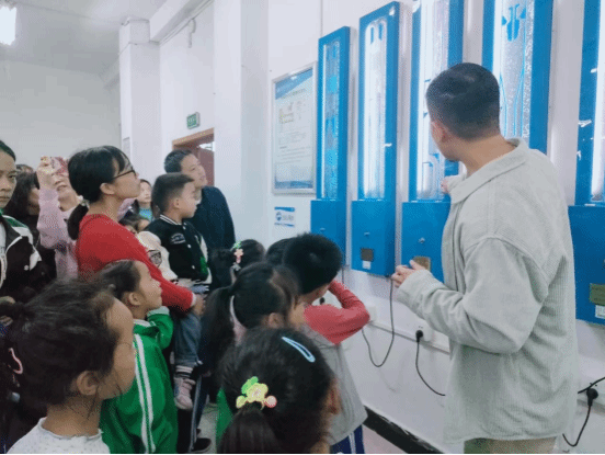 一进入水工模型大厅,孩子们就被眼前的科技模型和各种科学仪器吸引住。为了让孩子们更好地学习,工作人员向孩子们展示了“流体流线显示实验仪”。通过显示仪,孩子们直观地看到水在遇到各种阻碍时的状态及产生旋涡、暗流、相对静止的位置。在综合式水利枢纽模型室,孩子们围在仿真模型前,听讲解员详细介绍大坝的类型、组成部分,水库的功能等水利知识,进一步了解水利工程和水库的结构作用。孩子们认真聆听,感受着科学技术的伟大和神奇。