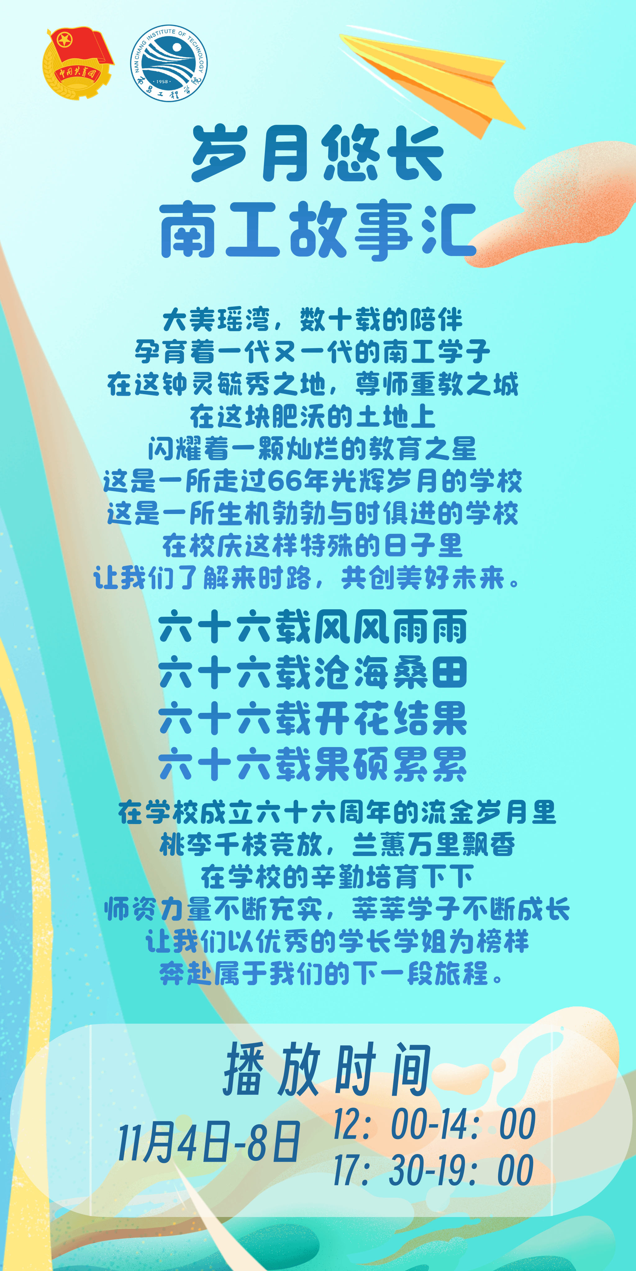 广播台在11月4日至8日推出“岁月悠长·南工故事汇”特别节目。在这些节目里,一个个生动鲜活的故事,犹如一幅幅画卷,徐徐展开南昌工程学院波澜壮阔的发展历程,尽显其辉煌成就,同时也将优秀校友们精彩纷呈的经历娓娓道来,激励同学们以优秀前辈为榜样,在新时代新征程中勇挑重担,为学校发展和社会进步贡献自己的力量。(文 伍玉婷 詹琦 吴浩然 图 青年传媒中心 学生团工委 责任编辑 潘旭 罗婷)