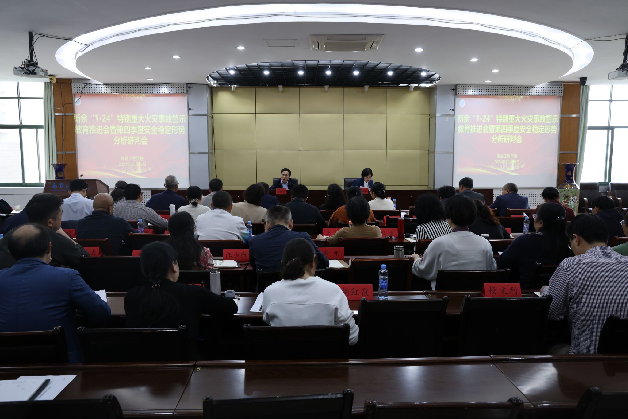 11月15日上午,欧博在行政楼五楼会议室召开新余“1.24”特别重大火灾事故警示教育推进会暨第四季度安全稳定形势分析研判会。校党委书记汪胜前出席并讲话,副校长周敏丹主持,校各平安建设责任单位主要负责人参加。