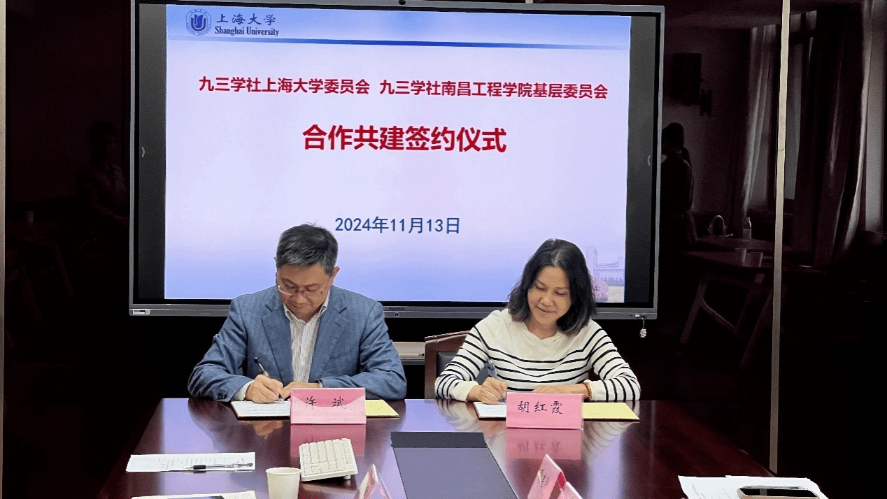 11月13日,九三学社南昌工程学院基层委员会与九三学社上海大学委员会签署合作共建协议,深入落实沪赣两地教育合作精神,进一步推动南昌工程学院与上海大学合作,助力两校学术交流和科研合作。