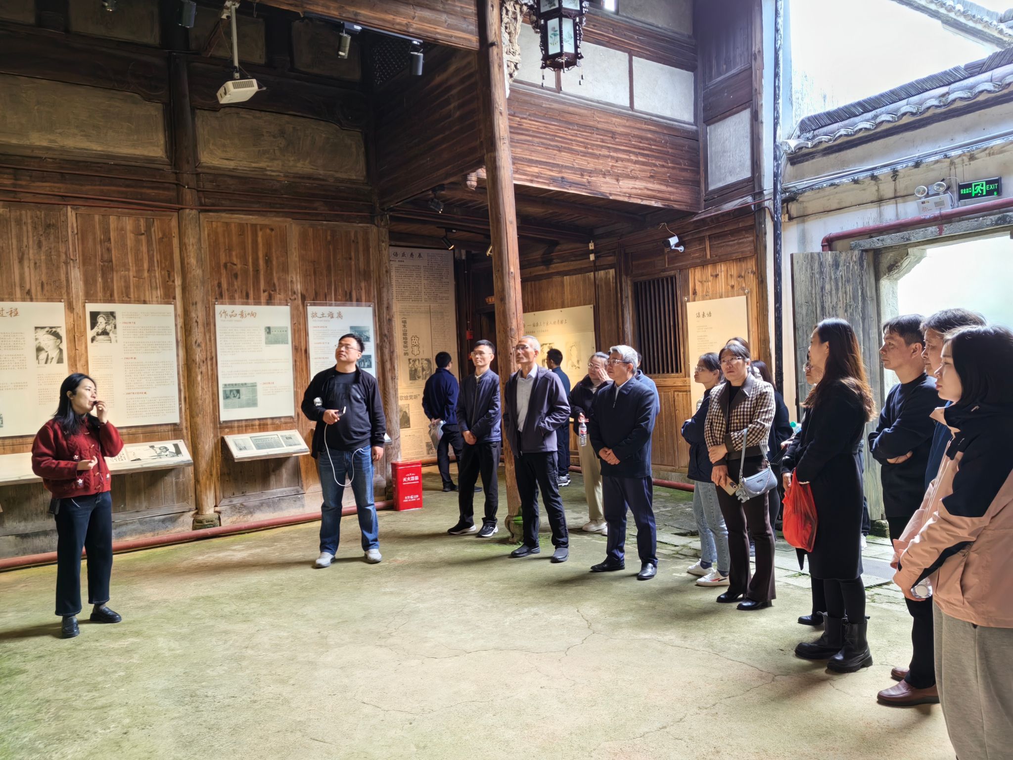 教职工们先后参观了铅山河口古街遗址、“千年纸都”红色石塘和鹅湖书院等地。在石塘红色教育基地,大家参观了享有国家级历史文化民村称号的古代江南五大手工业基地之一——石塘村,同时也感受了作为江西省第一批红色名村革命老区根据地的历史风貌。现场标语口号、革命旧址、珍贵实物、真实手稿,无声地诉说着那段峥嵘岁月里英雄人物的故事。当大家得知《唱支山歌给党听》歌词出自石塘村作家姚筱舟时,都情不自禁集体哼唱起了这首歌曲,深刻体验着歌曲中传递的人民群众对党的深厚情怀。