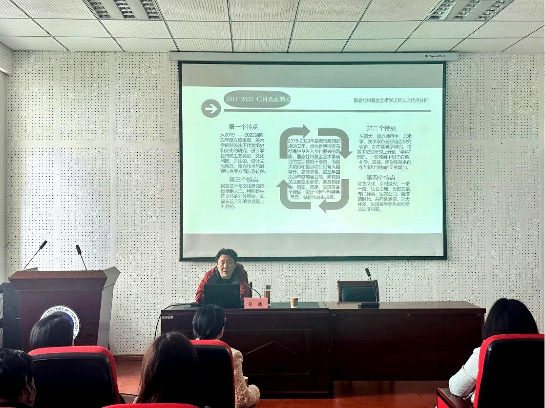 讲座中,张犇教授首先从项目总量、比例构成、研究亮点等多个维度介绍了我国国家社会科学基金项目艺术学项目的发展轨迹,然后细致地剖析了1979-1999、2000-2010、2011-2023三个时期的艺术研究选题特点,最后结合案例阐述了选题的方法和技巧。他指出,在选题时要把握开拓创新、重要意义、重点突出等特色。(文 姜婉怡 王丹 图 邹先亮 责任编辑 潘旭 罗婷)
