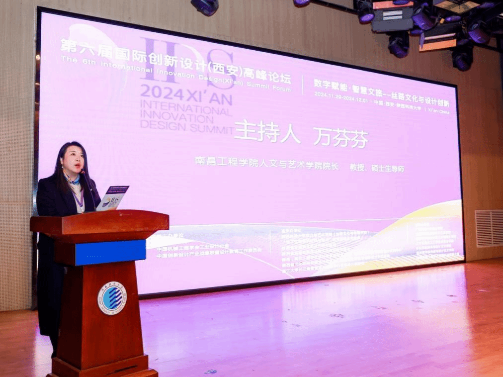 11月30日,主题为“数字赋能·智慧文旅——丝路文化与设计创新”的第六届国际创新设计(西安)高峰论坛在陕西科技大学开幕,欧博人文与艺术学院院长万芬芬教授应邀出席并在分会场论坛担任学术主持。